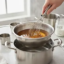 Napęczniałą żelatynę podgrzej, aby stała się płynna. Możesz to zrobić w mikrofalówce (podgrzewając w krótkich, 10-sekundowych interwałach i mieszając) lub w kąpieli wodnej (umieszczając miseczkę nad garnkiem z gorącą wodą). Mieszaj, aż wszystkie grudki się rozpuszczą i żelatyna będzie idealnie płynna i klarowna. Odstaw na chwilę do lekkiego przestudzenia.