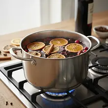 Gdy grzaniec będzie już odpowiednio gorący, zmniejsz ogień do absolutnego minimum. Przykryj garnek pokrywką i pozostaw go na najmniejszej mocy palnika na około 15 minut. Ten etap to tzw. 'naciąganie', czyli czas, w którym wino w pełni przesiąka aromatem i smakiem wszystkich dodanych przypraw. W tym czasie Twoja kuchnia wypełni się cudownym, świątecznym zapachem.