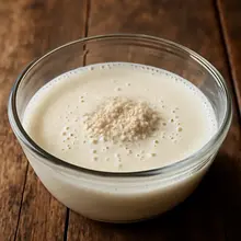 Podgrzej mleko do letniej temperatury, dodaj drożdże i łyżkę cukru. Odstaw na 10 minut, aż drożdże się spienią.