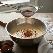 Do drugiej miski z ciastem przesiej przez sitko ciemne kakao. Podobnie jak w przypadku masy waniliowej, delikatnie wymieszaj kakao z ciastem za pomocą szpatułki, aż uzyskasz jednolity, czekoladowy kolor. Mieszaj cierpliwie, ale staraj się nie robić tego zbyt długo. Masa kakaowa będzie nieco gęstsza od waniliowej – to normalne.