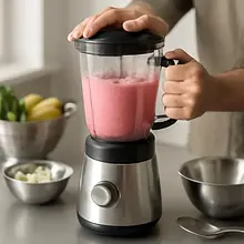 Zamknij pokrywę blendera. Rozpocznij blendowanie od krótkich pulsów (3–4 razy po 1 sekundzie), aby rozbić większe kawałki truskawek, a następnie miksuj na średniej prędkości przez 30–45 sekund. Sprawdź konsystencję: smoothie powinno być gładkie, bez większych kawałków owoców, o konsystencji, która swobodnie spływa z łyżki, ale jednocześnie powinna lekko oblepiać jej tylnią część.