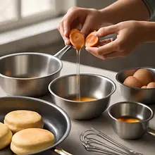 Technika oddzielania i ubijania białek, a następnie delikatnego składania ich w masę, to klasyczna metoda tworzenia biszkoptów — dzięki temu placki nabierają lekkiej, niemal chmurkowej struktury mimo smażenia na patelni.
