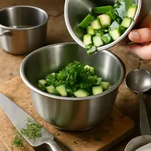 Dopraw chłodnik solą i pieprzem. Dodaj sól stopniowo w małych porcjach (po 1 g) i mieszaj, smakując po każdej dodanej porcji. Dopraw sokiem z cytryny, jeśli potrzebujesz więcej kwasu. Cały proces doprawiania powinien zająć 1-3 minuty — celem jest zrównoważony smak: delikatna kwaskowość, odrobina soli i lekka pikantność od pieprzu.