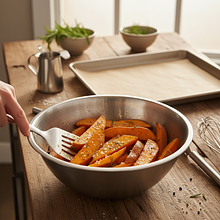 Odkryj sekret idealnie chrupiących, pieczonych frytek z batatów, które staną się gwiazdą każdej imprezy! Bataty, czyli słodkie ziemniaki, to fantastyczna alternatywa dla tradycyjnych frytek. Ich naturalna słodycz wspaniale komponuje się z dymnym aromatem wędzonej papryki i nutą czosnku, tworząc przekąskę o złożonym, uzależniającym smaku. Dzięki pieczeniu zamiast smażenia, są znacznie lżejsze i zdrowsze, a nasz sprawdzony sposób z moczeniem i dodaniem skrobi ziemniaczanej gwarantuje niesamowitą chrupkość na zewnątrz, przy jednoczesnym zachowaniu miękkiego, kremowego wnętrza. Są nie tylko pyszne, ale i pięknie prezentują się na stole dzięki swojemu intensywnemu, pomarańczowemu kolorowi. Idealne jako samodzielna przekąska na Sylwestra, dodatek do burgerów czy wegańskich kotletów. Podane z ulubionym sosem, znikają z talerza w mgnieniu oka!