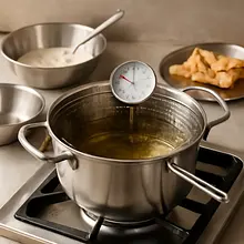 Przygotuj głęboki garnek lub frytkownicę z olejem. Rozgrzewaj olej do temperatury 170–180°C. Jeśli nie masz termometru użyj kawałka ciasta: jeśli wypływa natychmiast i pojawiają się pęcherzyki, olej jest gotowy. Smaż chruściki partiami (3–4 sztuki jednocześnie) przez około 40–60 sekund na stronę, przewracając delikatnie łopatką – powinny nabrać równomiernego, złotego koloru.