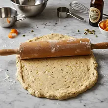 Po wybiciu ciasta, zawiń je szczelnie w folię spożywczą lub włóż do woreczka. Odstaw ciasto na minimum 30 minut w temperaturze pokojowej (lub do godziny w lodówce). Ten czas pozwoli glutenowi w cieście odpocząć, dzięki czemu będzie ono bardziej elastyczne i łatwiejsze do bardzo cienkiego rozwałkowania.