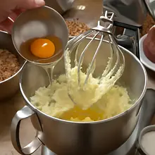 Do utartego masła dodawaj kolejno jajka (po jednym), każdorazowo miksując 20–30 sekund do połączenia. Po dodaniu wszystkich jaj dodaj ekstrakt waniliowy i zmiksuj krótko. Masa powinna być jednolita, bez dużych grudek surowego jajka.