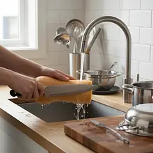 W czasie gdy dynia się piecze, przygotuj komosę. Wsyp odmierzoną ilość komosy na bardzo drobne sitko. Płucz ją pod zimną, bieżącą wodą przez około minutę, energicznie mieszając i pocierając ziarna dłońmi. Jest to kluczowy krok, który usuwa z ziaren naturalną, gorzką otoczkę zwaną saponinami.