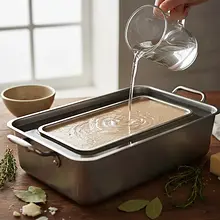Zalej zawartość garnka gorącą wodą, tak aby mięso i warzywa były niemal całkowicie przykryte (około 1.5 litra wody). Doprowadź do wrzenia, a następnie zmniejsz ogień do minimum, przykryj garnek i duś całość przez około 2.5 godziny. Po tym czasie mięso powinno być niezwykle miękkie i samo odchodzić od kości. Płyn, który powstanie, to esencjonalny bulion, który będzie bazą smaku pasztetu.