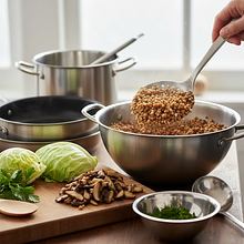 Ugotuj kaszę gryczaną. Wsyp 200g kaszy do małego garnka, zalej 400 ml zimnej wody (proporcja 1:2), dodaj pół łyżeczki soli. Zagotuj, a następnie zmniejsz ogień do minimum, przykryj garnek i gotuj przez około 15 minut, aż kasza wchłonie całą wodę. Nie mieszaj kaszy w trakcie gotowania. Po ugotowaniu zdejmij garnek z ognia i pozostaw pod przykryciem na kolejne 10 minut, aby 'doszła'. Powinna być sypka, a nie sklejona.