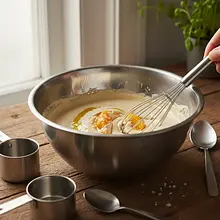Zacznij mieszać składniki sosu za pomocą małej trzepaczki, widelca lub potrząsając zamkniętym słoikiem. Na początku sos może wydawać się bardzo gęsty i grudkowaty – to normalna reakcja tahini. Stopniowo, po łyżce, dodawaj zimną wodę, cały czas mieszając, aż sos osiągnie gładką, kremową konsystencję przypominającą lejący się miód. Spróbuj i ewentualnie dopraw do smaku.