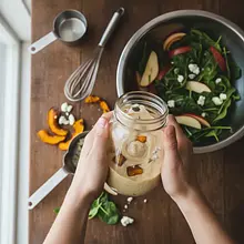 Mocno zakręć słoik. Następnie, trzymając go pewnie, energicznie potrząsaj nim przez około 30 sekund. Zobaczysz, jak oliwa, miód i musztarda łączą się, tworząc jednolity, kremowy i lekko zgęstniały sos. To proces nazywany emulgowaniem. Spróbuj sosu i w razie potrzeby dopraw go dodatkowo solą, pieprzem, miodem (jeśli wolisz słodszy) lub sokiem z cytryny (jeśli wolisz bardziej kwaśny). Odstaw gotowy sos na bok.