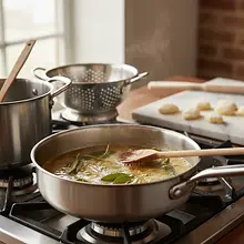 Podawaj danie natychmiast po wyjęciu z piekarnika, w głębokich, podgrzanych miseczkach. Doskonale komponuje się z prostą sałatką z rukoli z dressingiem winegret, która zrównoważy bogactwo potrawy. Do picia pasować będzie kieliszek schłodzonego, wytrawnego białego wina, np. Pinot Grigio lub Sauvignon Blanc.