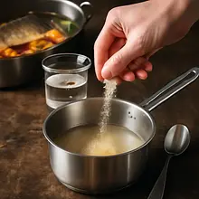 Sprawdź filety z karpia pod kątem ości. Połóż filet skórą do dołu na desce, przesuwaj palcami wzdłuż mięsa aby wyczuć ewentualne ości. Jeśli znajdziesz ości, usuń je pęsetą/kleszczami do ryb prostopadle do mięsa, chwytając u nasady i delikatnie wyciągając. Pokrój filety na porcje o wadze około 160–180 g każda (powinno wyjść ok. 6 porcji). Opłucz szybko pod zimną wodą i osusz papierowym ręcznikiem.
