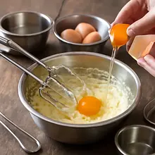 Przygotuj bakalie: rodzynki (150 g) i suszone morele (100 g) umieść w dużej misce. Jeśli używasz rumu (50 ml, opcjonalnie), zalej nim bakalie tak, aby były tylko lekko pokryte, wymieszaj i odstaw na minimum 1 godzinę w temperaturze pokojowej. Jeśli nie używasz rumu, zalej bakalie 50 ml ciepłej wody lub soku pomarańczowego i odstaw. Po namoczeniu odsącz bakalie na sicie i osusz papierowym ręcznikiem — zbyt wilgotne bakalie sprawią, że ciasto będzie zbyt ciężkie.