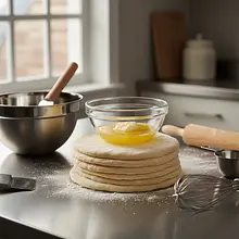 Zacznij od przygotowania rozczynu, który 'obudzi' drożdże. W małym garnuszku podgrzej 150 ml mleka. Musi być ono lekko ciepłe, o temperaturze około 37°C – jak temperatura ciała. Sprawdź, dotykając kroplą wewnętrznej strony nadgarstka - nie powinno parzyć. Do dużej miski wkrusz świeże drożdże, dodaj 1 łyżkę cukru (z odważonych 80g) i zalej ciepłym mlekiem. Dokładnie wymieszaj widelcem, aż drożdże całkowicie się rozpuszczą. Przykryj miskę czystą ściereczką i odstaw w ciepłe, wolne od przeciągów miejsce na około 10-15 minut. Po tym czasie na powierzchni powinna pojawić się gęsta piana, tzw. 'czapeczka'. To znak, że drożdże są aktywne i gotowe do pracy.