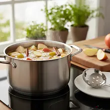 Gotuj napój na bardzo małym ogniu przez około 25 minut. Płyn powinien tylko delikatnie 'mrugać' (powoli uwalniać małe bąbelki), a nie gwałtownie wrzeć. W tym czasie owoce całkowicie zmiękną, a przyprawy uwolnią swoje głębokie aromaty, które wypełnią całą kuchnię. Napój nabierze pięknego, bursztynowego koloru.