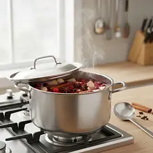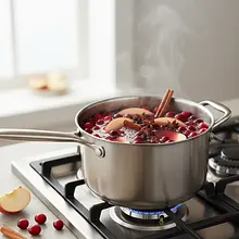 Postaw garnek na kuchence i ustaw średnią moc palnika. Podgrzewaj napój, od czasu do czasu mieszając, aż stanie się bardzo gorący. Obserwuj krawędzie garnka – gdy zaczną pojawiać się tam małe pęcherzyki powietrza, a z powierzchni zacznie unosić się para, to znak, że napój osiągnął odpowiednią temperaturę. Nie doprowadzaj go do wrzenia.