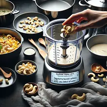 Namocz nerkowce: włóż 150 g nerkowców do miski i zalej wrzątkiem tak, aby woda je przykryła. Przykryj miskę talerzem i odstaw na co najmniej 30 minut (możesz zostawić na godzinę, jeśli masz czas). Po namoczeniu nerkowce powinny być miękkie w dotyku i łatwo rozdrabnialne między palcami.