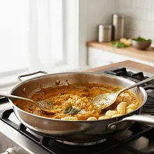 To danie to kwintesencja jesieni zamknięta na talerzu. Aksamitny, głęboki w smaku sos ze słodkiej, pieczonej dyni Hokkaido otula delikatne, ziemniaczane kluseczki gnocchi. Całość wzbogacona jest o leśne, ziemiste nuty smażonych grzybów oraz niezwykły aromat chrupiących listków szałwii, usmażonych na maśle. Danie ma przepiękny, intensywnie pomarańczowy kolor, który cieszy oko i zapowiada bogactwo smaków. Jest to idealna propozycja na chłodniejsze dni – sycąca, rozgrzewająca i niezwykle komfortowa. Doskonale sprawdzi się zarówno jako codzienny, wykwintny obiad, jak i danie na specjalną okazję, którym zaimponujesz gościom. Podawaj je posypane startym parmezanem i prażonymi pestkami dyni dla dodatkowej tekstury.