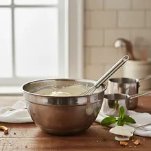Metalowy pojemnik szybciej przewodzi zimno, co sprzyja lepszemu mrożeniu lodów. Możesz użyć również plastikowego pojemnika z pokrywką przeznaczonego do mrożenia.