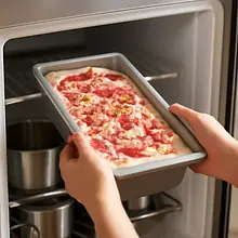 Mrożenie: włóż foremkę do zamrażarki na minimum 6 godzin, a najlepiej na całą noc (8 godzin) — lodom trzeba czasu, aby całkowicie stężały. Unikaj częstego otwierania zamrażarki w tym czasie.