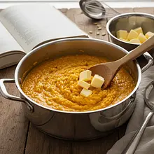 Po około 15 minutach spróbuj ziarenko ryżu. Powinno być już prawie miękkie, ale wciąż lekko twarde w środku (al dente). W tym momencie dodaj przygotowane wcześniej purée z dyni oraz posiekane listki świeżej szałwii. Dokładnie wymieszaj, aż risotto nabierze jednolitego, pomarańczowego koloru. Gotuj jeszcze przez 2-3 minuty, w razie potrzeby dodając ostatnią chochelkę bulionu, jeśli risotto jest zbyt gęste.