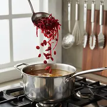 Zdejmij garnek z ognia. Teraz czas na doprawienie. Dodaj sól, cukier, świeżo zmielony pieprz, roztarty w dłoniach majeranek oraz ocet jabłkowy. Opcjonalnie możesz dodać łyżkę sosu sojowego dla pogłębienia smaku. Mieszaj i próbuj po każdym dodanym składniku. Celem jest osiągnięcie idealnego balansu między smakiem słodkim (od buraków i cukru), kwaśnym (od octu, żurawiny i jabłka) i słonym.