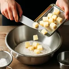 Przygotuj składniki i narzędzia: wyjmij masło z lodówki na chwilę przed rozpoczęciem, aby było zimne, a jajko wyjmij 30-60 minut wcześniej, żeby osiągnęło temperaturę pokojową. Przygotuj dużą miskę, tarkę do masła lub siekacz do ciasta, wałek, papier do pieczenia i blachę. Odważ wszystkie składniki wg listy.