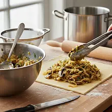 Paszteciki z kapustą i grzybami to absolutna klasyka polskiej kuchni, nieodłączny element wigilijnego stołu, podawany tradycyjnie do czystego, esencjonalnego barszczu czerwonego. Ten przepis to hołd dla tradycji w nowoczesnym, dopracowanym wydaniu. Sekretem jest ciasto półfrancuskie, które dzięki technice siekania zimnego tłuszczu z mąką i delikatnego składania, uzyskuje niezwykłą, listkową strukturę. Jest ono cudownie maślane, kruche i rozpływające się w ustach, a jednocześnie znacznie prostsze w przygotowaniu niż klasyczne ciasto francuskie. Farsz to kwintesencja smaku – intensywnie grzybowy dzięki suszonym borowikom, z idealnie zbalansowaną kwasowością kapusty kiszonej, przełamaną słodyczą wolno duszonej cebulki. Całość doprawiona jest majerankiem, który dodaje ziołowej głębi. Wizualnie paszteciki prezentują się niezwykle apetycznie – małe, zgrabne prostokąty o złocistobrązowej, błyszczącej od żółtka skórce, często posypane kminkiem lub czarnuszką. To danie, które buduje atmosferę świąt i rodzinnych spotkań.