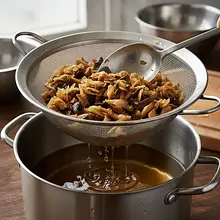 Odcedź namoczone grzyby, ale KONIECZNIE zachowaj wodę, w której się moczyły – to esencjonalny wywar grzybowy. Przelej go ostrożnie do innego naczynia, pozostawiając na dnie ewentualny osad. Grzyby posiekaj dość drobno nożem na desce do krojenia.
