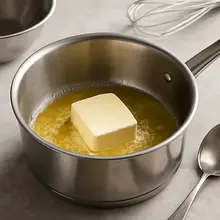 Rozpuść 70 g masła w rondelku na małym ogniu lub w mikrofali. Wlej rozpuszczone masło do zmielonych herbatników, dodaj 30 g cukru (z ogólnej puli 80 g) i mieszaj drewnianą łyżką aż masa będzie jednolita i lekko wilgotna — powinna zlepiać się, gdy ściśniesz ją w dłoniach.