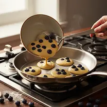 Urocze, puszyste i niezwykle smaczne placuszki, które zamienią każde śniadanie w magiczną przygodę. To idealna propozycja na weekendowy poranek dla całej rodziny, a w szczególności dla najmłodszych smakoszy. Każdy placuszek kryje w sobie soczyste borówki, które podczas smażenia pękają, uwalniając słodki, fioletowy sok. Ciasto jest lekkie jak chmurka dzięki odpowiedniemu napowietrzeniu i krótkiemu odpoczynkowi. Całość dopełnia delikatny, kremowy sos na bazie jogurtu naturalnego z nutą miodu i wanilii, który stanowi zdrowszą alternatywę dla słodkich syropów. Podane w fantazyjny sposób, na przykład w kształcie gąsienicy lub kwiatka, nie tylko zachwycą smakiem, ale również pobudzą dziecięcą wyobraźnię i zachęcą do jedzenia nawet największych niejadków. To danie to czysta radość na talerzu!