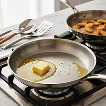 Na dużej patelni (o średnicy ok. 28 cm) na średniej mocy palnika rozpuść 30g masła. Gdy masło się rozpuści i zacznie delikatnie pienić, wsyp 30g brązowego cukru i mieszaj przez minutę, aż cukier się rozpuści, tworząc bazę karmelu. Na patelnię wrzuć przygotowane jabłka i 2g (1 łyżeczkę) cynamonu. Smaż, mieszając od czasu do czasu drewnianą łyżką, przez około 5-7 minut. Jabłka powinny lekko zmięknąć i pokryć się gęstym, lśniącym sosem, ale wciąż zachować swój kształt. Zdejmij patelnię z ognia i odstaw jabłka do lekkiego przestudzenia.