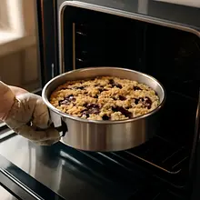 Przechowuj ciasto przykryte w temperaturze pokojowej do 48 godzin. Można je również zamrozić pokrojone na porcje (owinięte folią) do 1 miesiąca; rozmrażać powoli w temperaturze pokojowej i przez kilka minut podpiec w 160°C, aby odświeżyć kruszonkę.