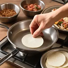 Użyj patelni bez dodatku tłuszczu. Jeśli tortille pękają, były zbyt suche — odłóż je pod ściereczkę, aby zmiękły od pary.