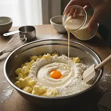 Zacznij od przygotowania zaczynu drożdżowego. W małej miseczce umieść pokruszone świeże drożdże. Dodaj jedną łyżeczkę cukru i rozetrzyj je razem łyżką, aż drożdże staną się płynne. Następnie dodaj jedną łyżkę mąki i około 2-3 łyżki ciepłej (ale nie gorącej!) wody lub mleka. Dokładnie wymieszaj, aby nie było grudek. Przykryj miseczkę ściereczką i odstaw w ciepłe miejsce na 10-15 minut. Zaczyn jest gotowy, gdy znacznie zwiększy swoją objętość i na powierzchni pojawi się piana.