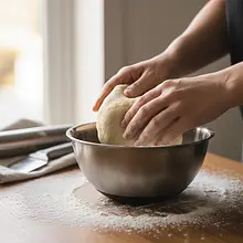 Uformuj z ciasta kulę, włóż ją z powrotem do miski, przykryj wilgotną ściereczką kuchenną lub folią spożywczą i odstaw na około 30 minut w temperaturze pokojowej. Ten etap jest bardzo ważny - gluten w cieście rozluźni się, dzięki czemu będzie ono bardziej plastyczne i łatwiejsze do wałkowania.