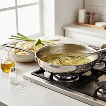 Na średniej patelni rozgrzej łyżkę oleju sezamowego na średnim ogniu. Wrzuć posiekany czosnek, imbir, trawę cytrynową i chili. Smaż przez około 1-2 minuty, ciągle mieszając, aż uwolnią intensywny aromat. Uważaj, aby nie przypalić czosnku, bo stanie się gorzki. Dodaj posiekane krewetki i smaż kolejne 2-3 minuty, aż zmienią kolor na różowy. Zdejmij patelnię z ognia.