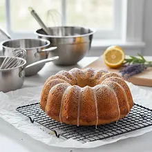Wyjmij upieczoną babkę z piekarnika i postaw formę na metalowej kratce. Pozostaw ją w formie do przestudzenia na dokładnie 15 minut. Po tym czasie ostrożnie odwróć formę do góry dnem – babka powinna gładko z niej wyjść. Pozostaw babkę na kratce do całkowitego wystudzenia (zajmie to około 1-2 godzin).