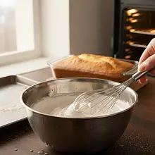 Zmniejsz obroty miksera do minimum. Dodawaj po jednym żółtku, miksując tylko do połączenia składników (około 10-15 sekund na każde żółtko). W osobnej misce wymieszaj przesianą mąkę pszenną z proszkiem do pieczenia. Dodaj suche składniki do masy jajecznej w dwóch lub trzech partiach, delikatnie mieszając szpatułką lub rózgą kuchenną. Wykonuj ruchy od dołu do góry, aby nie zniszczyć puszystej struktury piany.