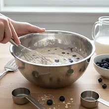 Dodaj jagody do ciasta. Po odpoczynku ciasta, wsyp do miski jagody. Teraz, używając silikonowej szpatułki lub dużej łyżki, bardzo delikatnie wmieszaj jagody w ciasto. Wykonuj ruchy od dołu do góry, jakbyś 'zagarniał' ciasto na owoce. Wystarczą 3-4 ruchy, tylko tyle, by jagody równomiernie się rozłożyły. Zbyt intensywne mieszanie zniszczy pęcherzyki powietrza i sprawi, że sok z jagód zabarwi całe ciasto na siny kolor.