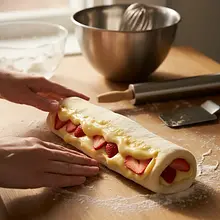 Zacznij od przygotowania rozczynu. W małym garnuszku podgrzej 250 ml mleka. Musi być ono lekko ciepłe, o temperaturze około 37°C – gdy włożysz do niego palec, powinno być przyjemnie ciepłe, ale nie gorące. Zbyt wysoka temperatura zabije drożdże. Do dużej miski lub kubka wkrusz 25g świeżych drożdży, dodaj 1 łyżkę cukru (z odważonych 80g), 1 łyżkę mąki (z odważonych 500g) i zalej ciepłym mlekiem. Dokładnie wymieszaj widelcem, aż wszystkie składniki się połączą i nie będzie grudek. Przykryj miseczkę czystą ściereczką i odstaw w ciepłe, wolne od przeciągów miejsce (np. koło kaloryfera lub w lekko nagrzanym piekarniku) na około 10-15 minut. Rozczyn jest gotowy, gdy znacznie zwiększy swoją objętość i na jego powierzchni pojawi się gęsta, bąbelkowa piana.
