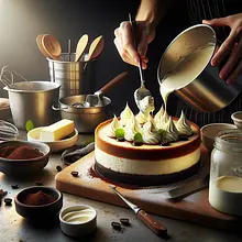 Unikalne połączenie kremowego sernika baskijskiego i aromatów tiramisu — gęsty, lekko przypieczony na zewnątrz sernik z intensywną nutą espresso i delikatnymi pasmami mascarpone. Ciasto nie ma tradycyjnej spodowej warstwy; jego powierzchnia jest ciemno karmelizowana, co kontrastuje z aksamitnym wnętrzem. W mojej wersji dodaję do masy kawałki nasączonych biszkoptów (ladyfingers), które podczas pieczenia delikatnie miękną i tworzą charakterystyczną teksturową strukturę — fragmenty chrupiąco-miękkie jak w tiramisu. Idealny na przyjęcia i święta oraz jako deser do kawy; podajemy go schłodzonego, oprószonego kakao i opcjonalnie polanego odrobiną likieru kawowego. Wizualnie efektowny: ciemna, pękająca skórka, kremowe wnętrze z widocznymi jasnymi smugami mascarpone i ciemniejszymi fragmentami biszkoptu.