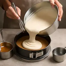 Przygotuj formę: użyj tortownicy o średnicy 20-22 cm. Dno wyłóż paskiem papieru do pieczenia (przytnij koło papieru do dna) — ułatwi wyciąganie sernika. Jeśli masz obręcz z regulacją, lekko natłuść bok formy masłem (cienka warstwa).