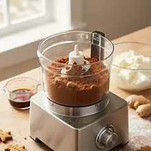 Pierniczki umieść w malakserze lub blenderze kielichowym i zmiksuj na drobny pył, przypominający mokry piasek. Jeśli nie masz malaksera, włóż pierniczki do mocnego woreczka strunowego i rozkrusz je dokładnie za pomocą wałka do ciasta.