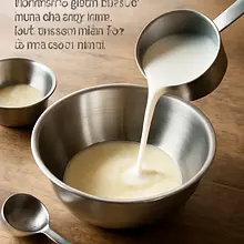 Napęcznij żelatynę: wsyp 8 g żelatyny do miseczki i zalej 50 ml zimnego mleka. Odstaw na 5 minut aż spęcznieje (powierzchnia powinna wyglądać jak gęsta galaretka). Następnie delikatnie podgrzej napęczniałą żelatynę w kąpieli wodnej lub w mikrofalówce przez 8-12 sekund, aż stanie się płynna i bez grudek (temperatura 30-40°C). Nie doprowadzaj do wrzenia — wysoka temperatura zniszczy żelatynę.