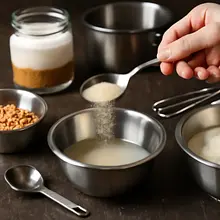 Wsyp 10 g żelatyny proszkowej równomiernie na powierzchnię 60 ml zimnej wody w małej miseczce; pozostaw na 5–10 minut, aż spęcznieje i zamieni się w galaretowatą masę. To nazywa się 'namaczaniem' żelatyny.