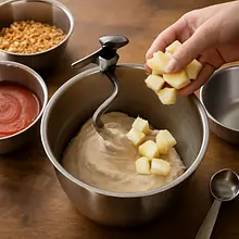 Przygotuj rozczyn: podgrzej 120 ml mleka do temperatury około 35-38°C (powinno być wyraźnie ciepłe, ale nie gorące — sprawdź przy pomocy dłoni). Pokrusz 20 g świeżych drożdży do małej miseczki, dodaj 10 g cukru (z całkowitej ilości), wlej ciepłe mleko i delikatnie wymieszaj widelcem do rozpuszczenia drożdży. Odstaw w ciepłe miejsce na 10-12 minut — na powierzchni powinny pojawić się pęcherzyki i pianka, co oznacza aktywację drożdży.