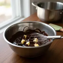 Do puszystej masy jajecznej wlej powoli, cienkim strumieniem, lekko przestudzoną masę czekoladową, cały czas delikatnie mieszając całość rózgą lub szpatułką. Dodaj opcjonalny ekstrakt waniliowy. Mieszaj tylko do połączenia składników w jednolitą, gładką masę. Zbyt długie mieszanie może sprawić, że ciasto będzie twarde.